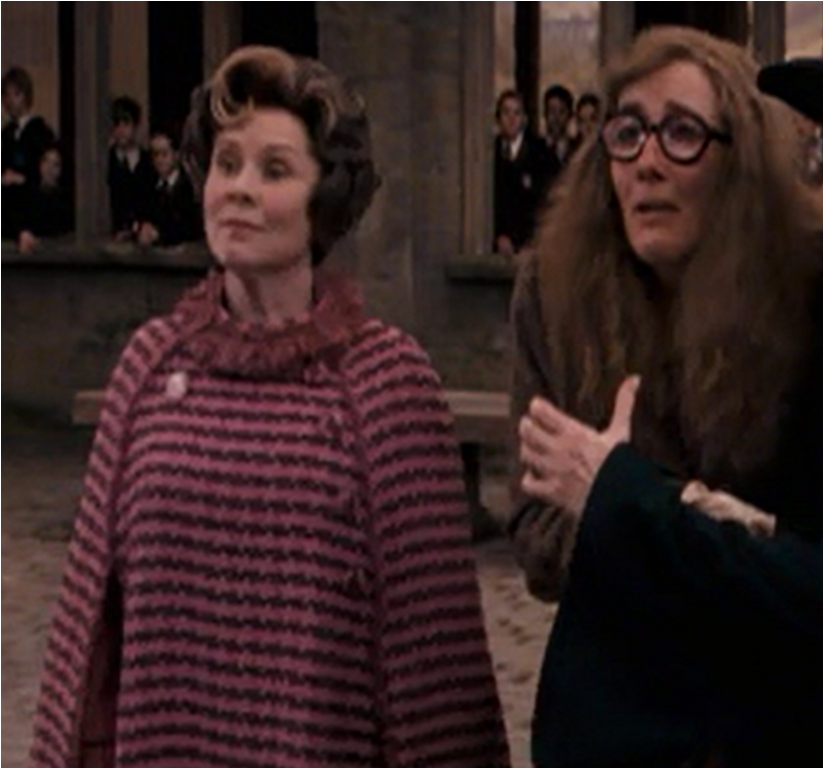 Umbridge borzalmas nőszemély, arrogáns, kegyetlen, és kétszínű. Egyenesen megkínozta a diákokat, erről egy előző cikkben már olvashattatok. Persze ha valaki egy nagy varangyra hasonlít, egy léggyel a fején, abból már semmi jó nem sülhet ki... A rózsaszín nem feltétlenül az ártatlanság színe.